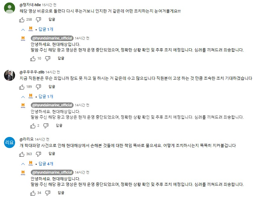 현대해상은 빠르게 대응하여 해당 광고 영상을 비공개로 전환하며, "정확한 상황을 확인 후 적절한 조치를 취하겠다"는 입장을 밝혔습니다. 하지만 누리꾼들의 분노는 쉽게 가라앉지 않고 있습니다.