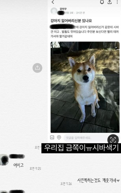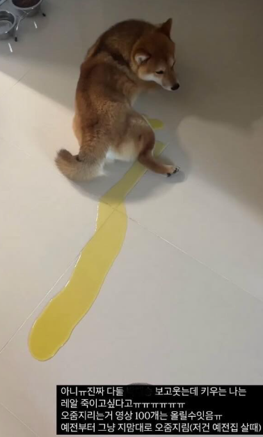 "우리 집 금쪽이 대송이, 내가 동물을 많이 사랑하는 건 다들 잘 알 테고... 며칠 전 오빠를 물고 나한테도 입질하고, 집에 사람 없으면 이불과 벽지에 오줌을 갈긴다. 혼내면 똥오줌 지리고 집은 똥밭이 된다. 된장 바르기 전에 할머니 댁으로 보낸다."